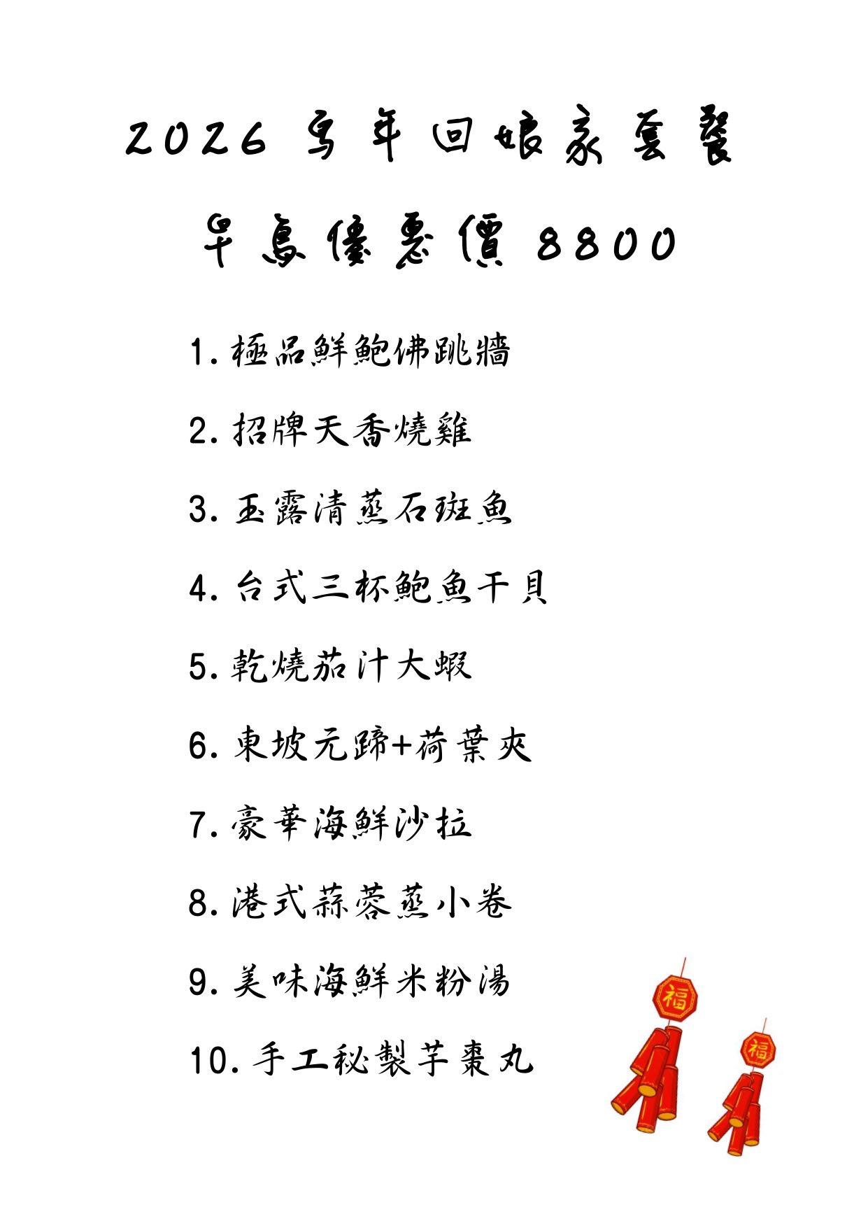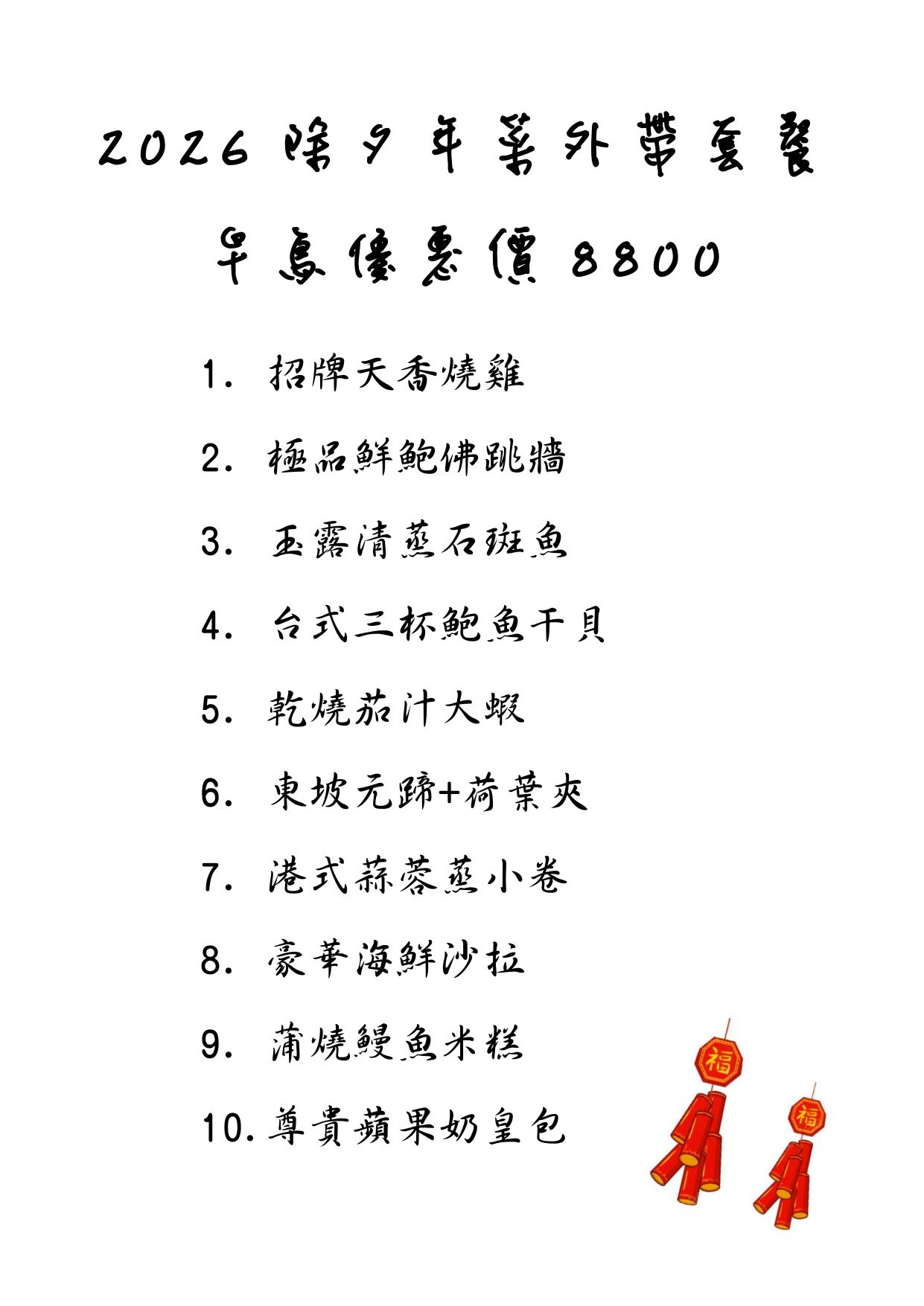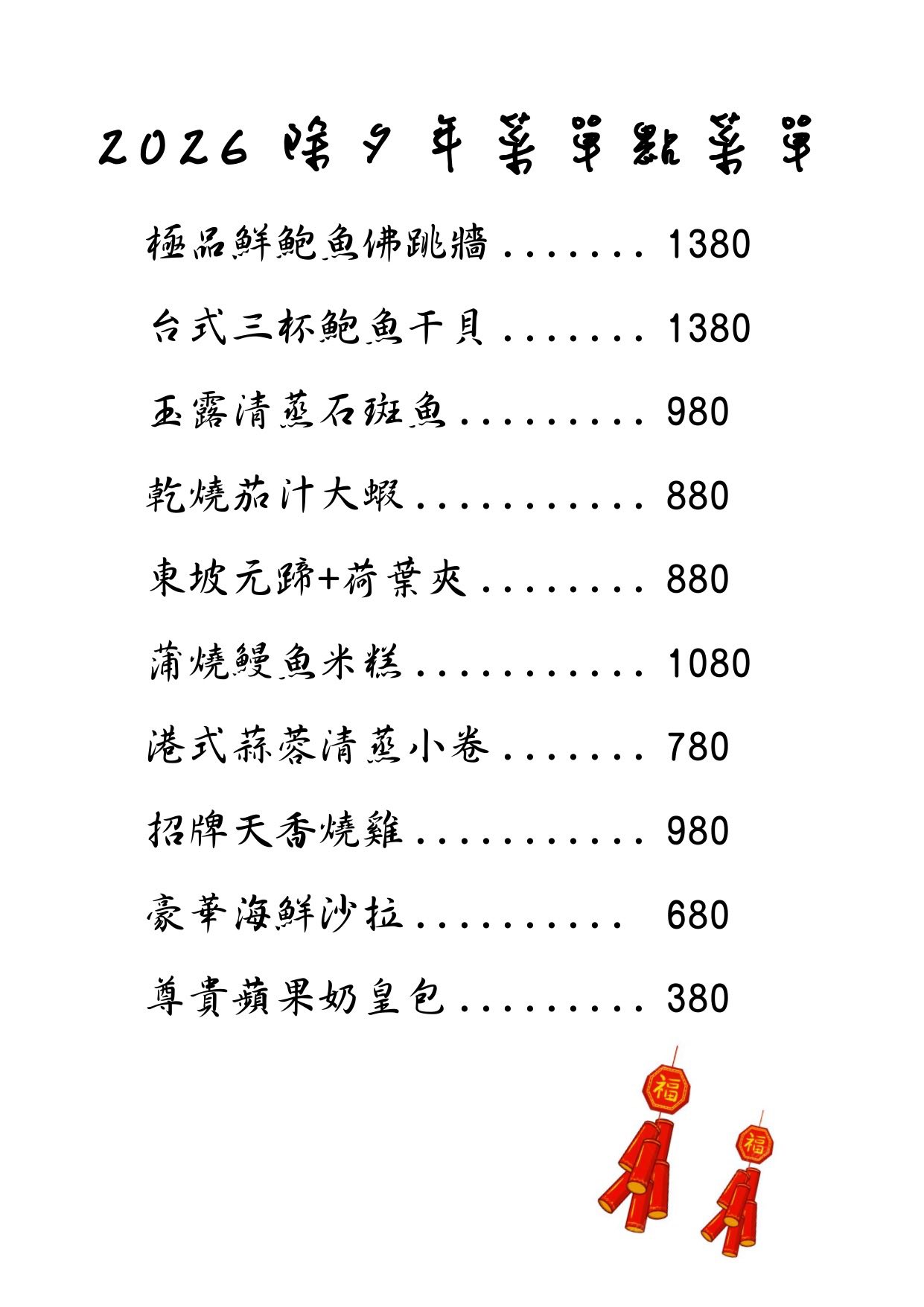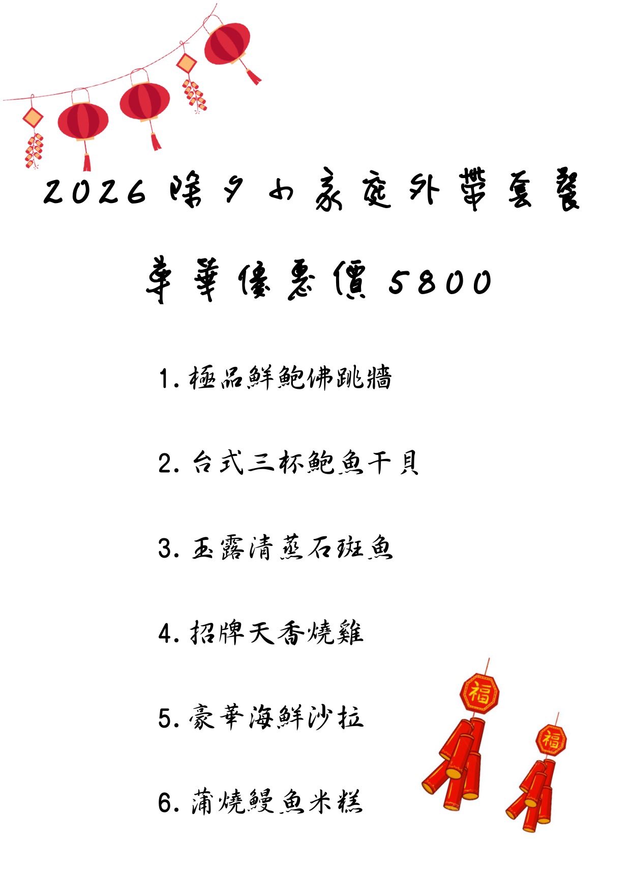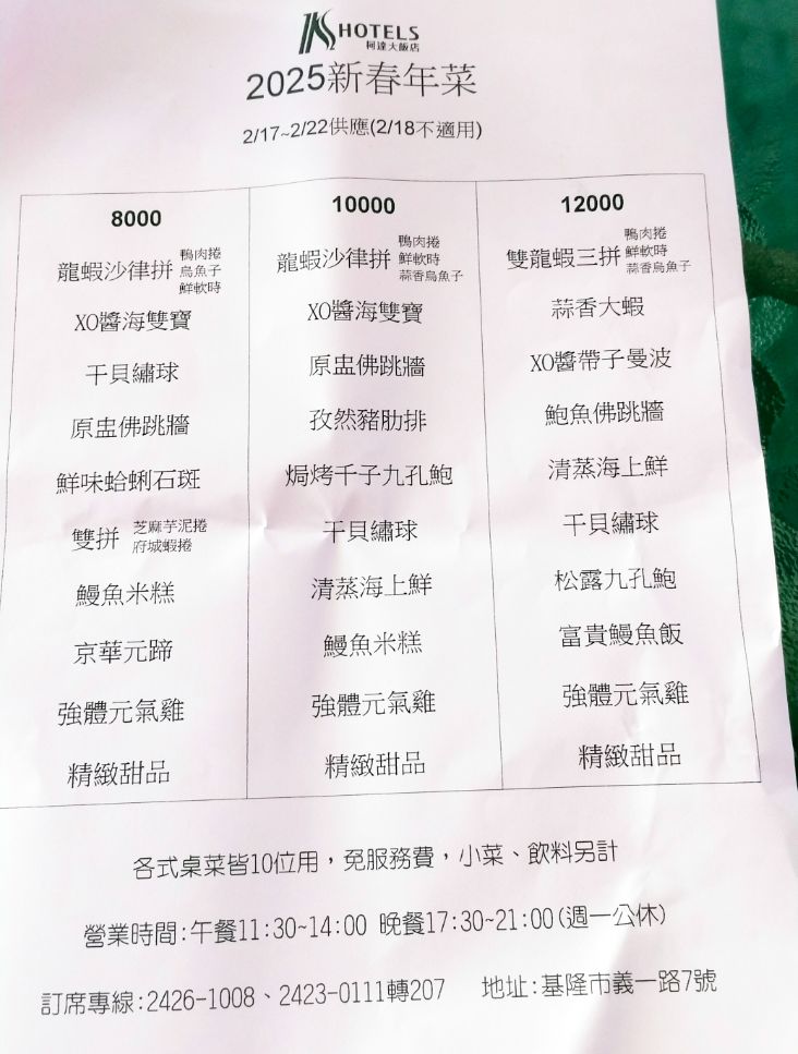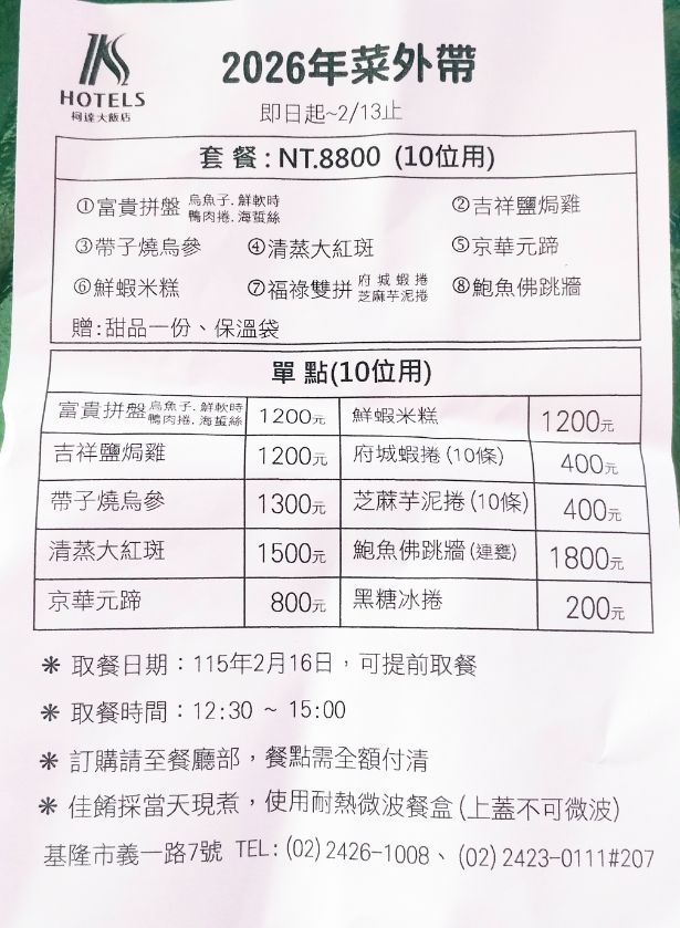 再過幾天,就到農曆春節,家裡的團圓飯準備好了嗎?基隆各家餐廳已陸續推出2026春節內用及外帶菜單,準備爭搶春節的團圓商機,基隆大玩咖編輯部特別為大家收集及整理基隆各家餐廳的年菜資料,大家快來瞧瞧。