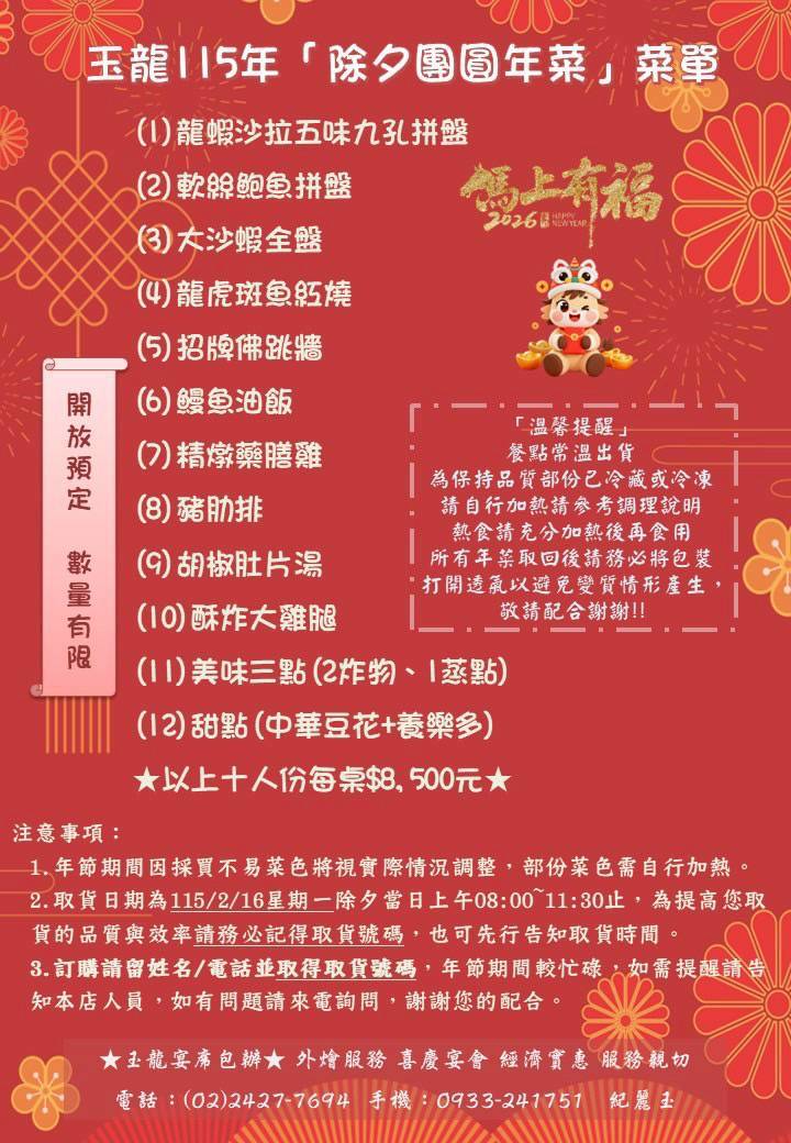 2026基隆年菜餐廳|玉龍宴席包辦