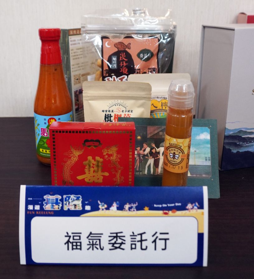 以推廣基隆伴手禮為主的福氣委託行,當然不缺席,現場呈列了崁仔頂甜不辣餅乾、蜂蜜等人氣商品。