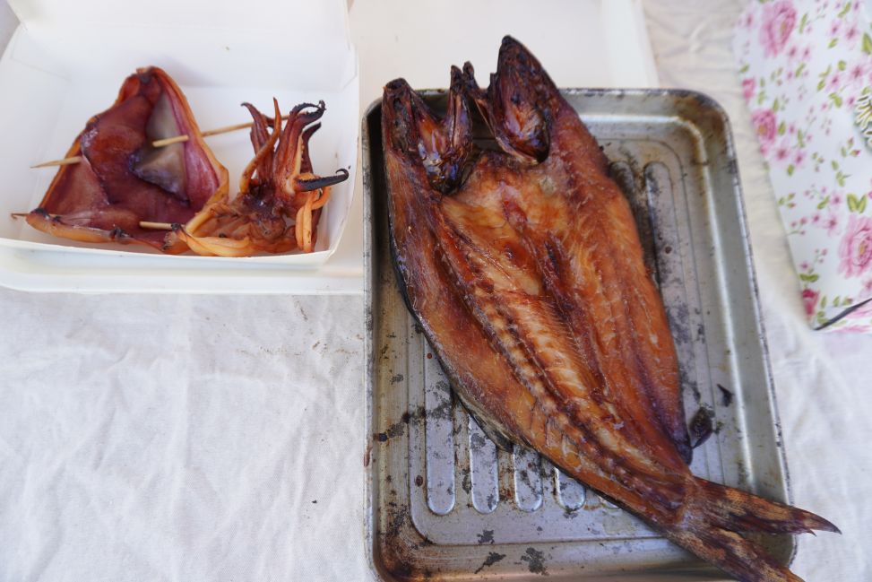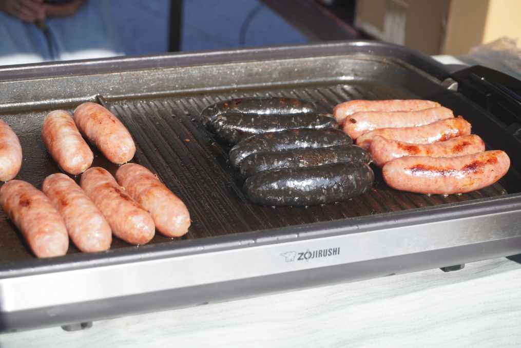 作為基隆人氣伴手禮品牌,現場在烤飛魚卵香腸跟墨魚香腸,濃郁的香氣,吸引不少人前去購買。