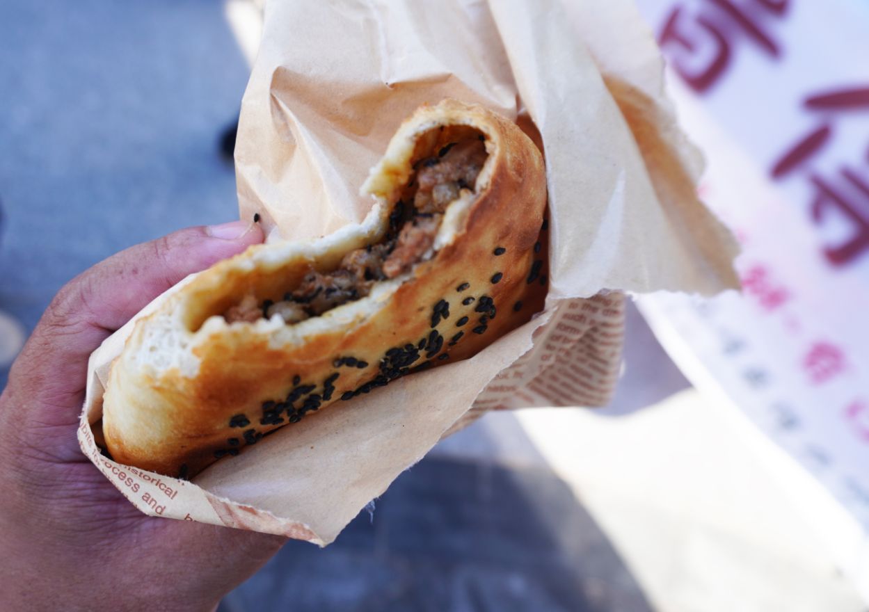 小玉老師還親手製作江浙口味的炭烤燒餅,裡頭加入梅干菜肉餡,並且以古法炭烤,吃起來口感豐富。