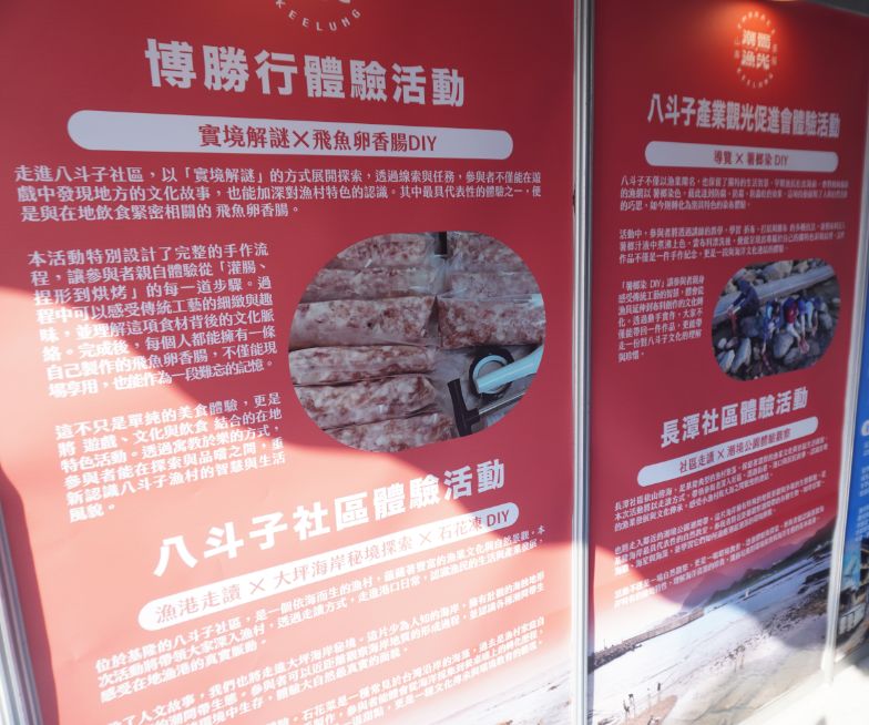 看板還有詳細介紹八斗子的體驗活動,包括博勝行的走讀,八斗子產業觀光促進會的薯榔染體驗,可以看出策展單位的用心。