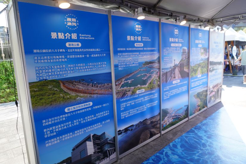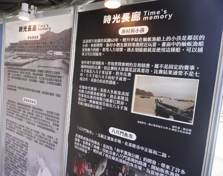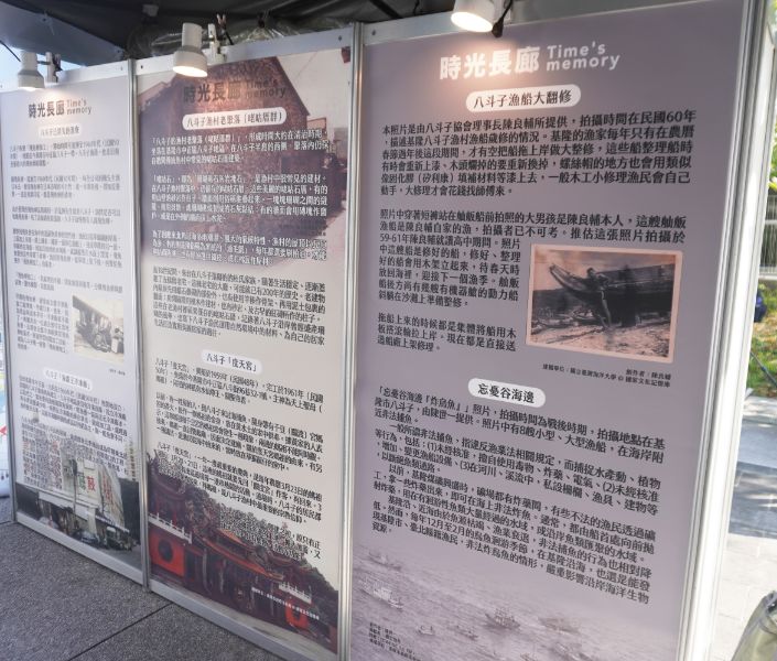 市集規劃了兩個沉浸式展覽區,靠近市集的展覽,以圖文看板介紹八斗子景點,以老照片介紹八斗子的歷史,分享長潭跟八斗子漁村的故事。