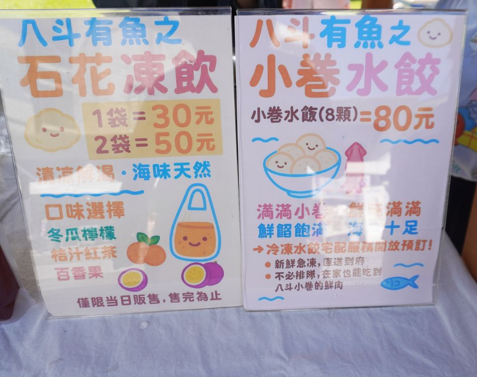 八斗子地方創生團隊,除了走讀行程,還有提供手作商品,石花凍飲以及小卷水餃。