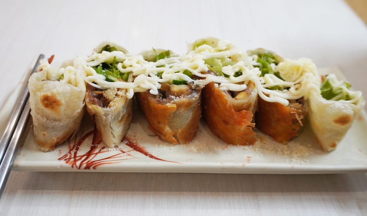 由一對夫妻經營,留著山羊鬍的施老闆,從山西老師傅傳承一身好手藝,招牌牛三寶捲餅,Q彈有嚼勁的餅皮,將滷的入味的牛三寶包裹其中,吃起來口感豐富。
