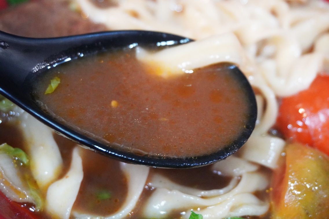 搭配口感紮實、勁道十足的「刀削麵」,吸附飽滿湯汁後,每一口都讓人大呼過癮。