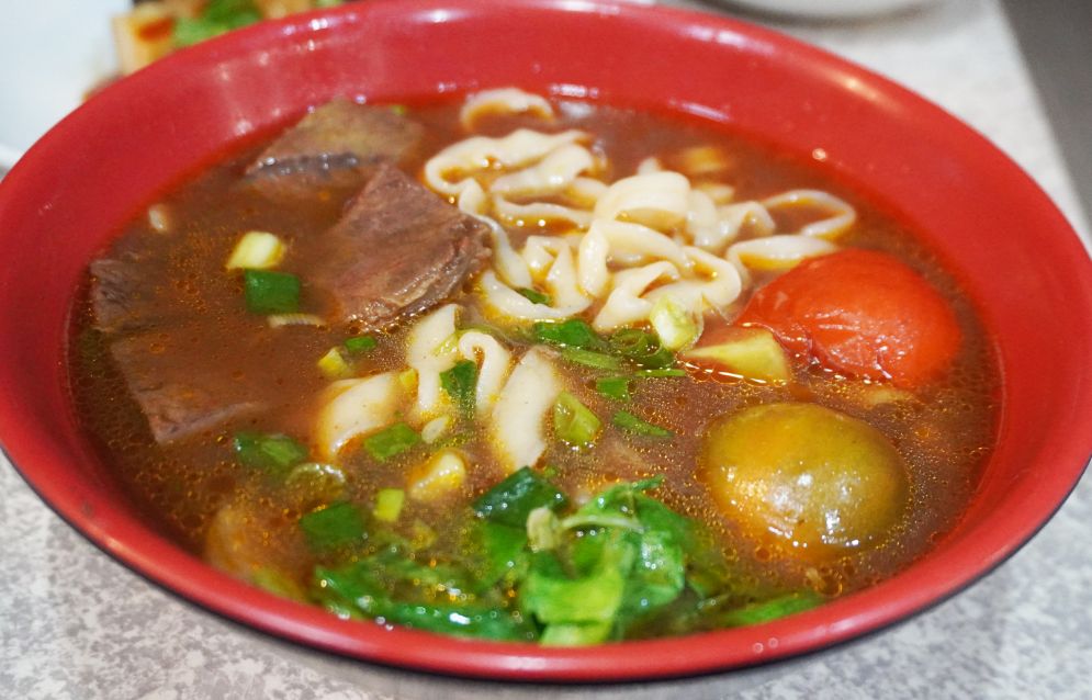 搭配口感紮實、勁道十足的「刀削麵」,吸附飽滿湯汁後,每一口都讓人大呼過癮。