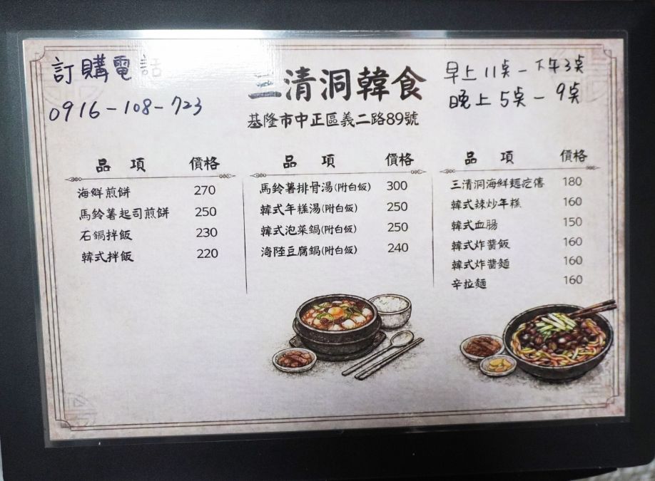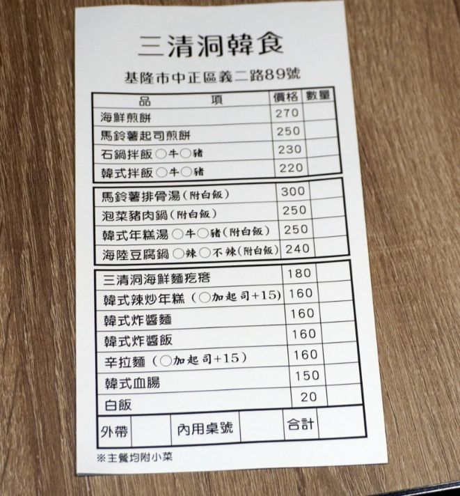 三清洞韓食基隆分店的菜單