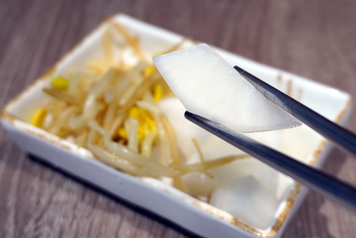 三清洞韓食基隆分店之所以能迅速累積口碑,除了主食出色外,對於小菜的處理也是原因之一。可以無限續加的醃蘿蔔,口感清脆、韓式小菜爽口,每一細節都展現出店家對風味的堅持。