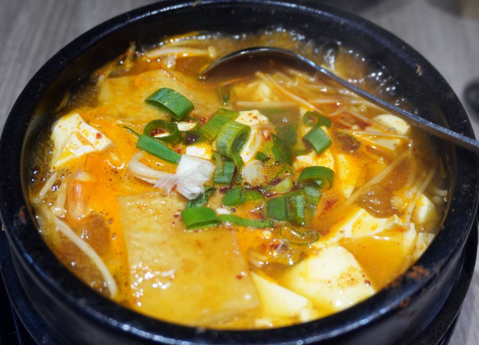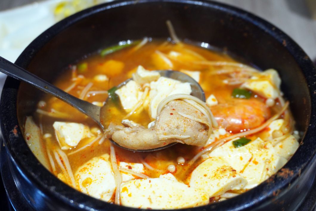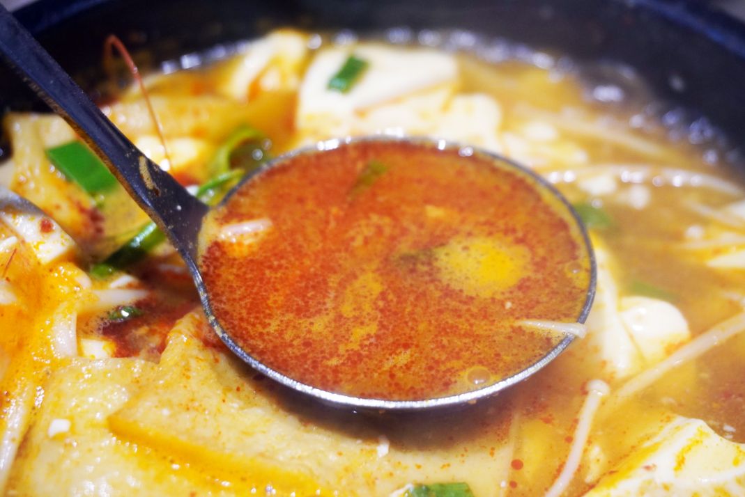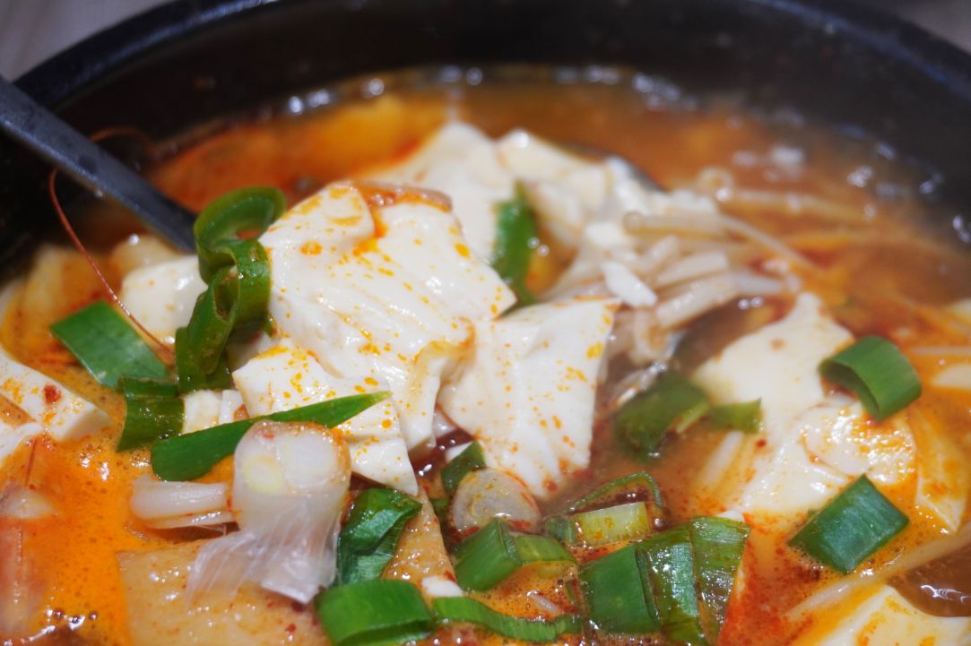豆腐吸飽了濃郁的湯汁,配上韓國進口的辛拉麵或是一碗白飯,在寒冷的基隆午後,這無疑是最療癒的選擇。