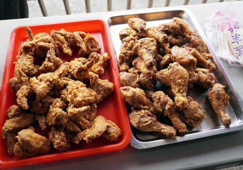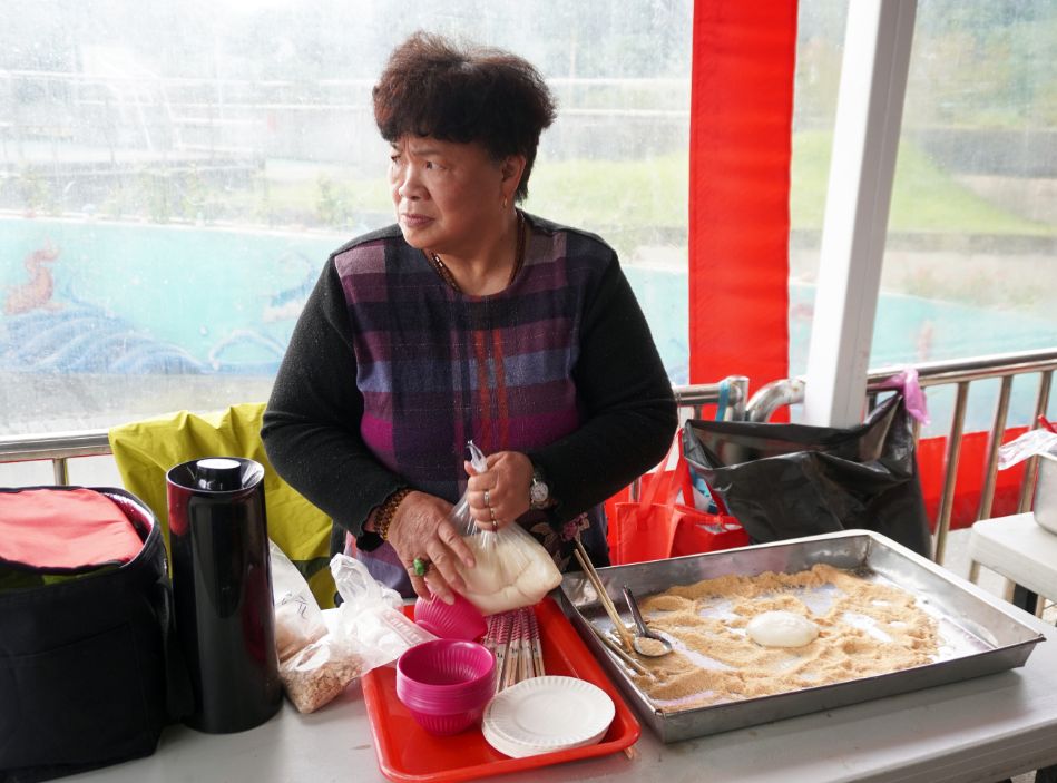 林浩隆里長準備了麻糬、炸雞翅、炸雞腿、大麵炒、麻油雞以及關東煮等熱食,里民跟長者們在享用美食的同時,也趁此機會跟周邊鄰居互動,氣氛超熱絡。