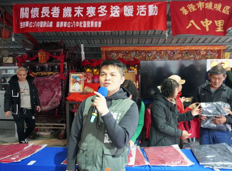 年節將至,由八中里辦公處主辦,八中社區發展協會協辦的關懷長者歲末寒冬送暖活動於2026年1月11日在廣興堂廟埕前展開,八中里林浩隆里長以實際行動關懷八中里長者。