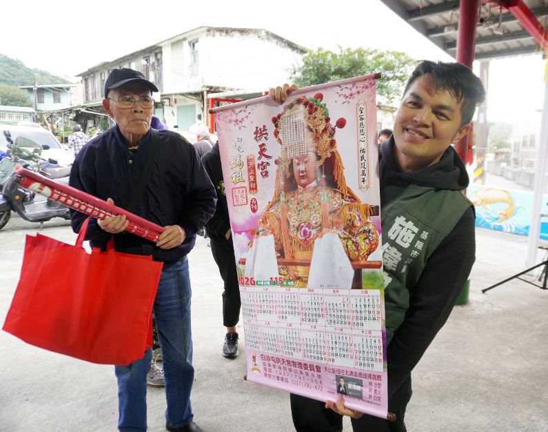 中山區市議員施偉政相當用心,還準備了白沙屯拱天宮媽祖的年曆,贈送給前來參加活動的里民。