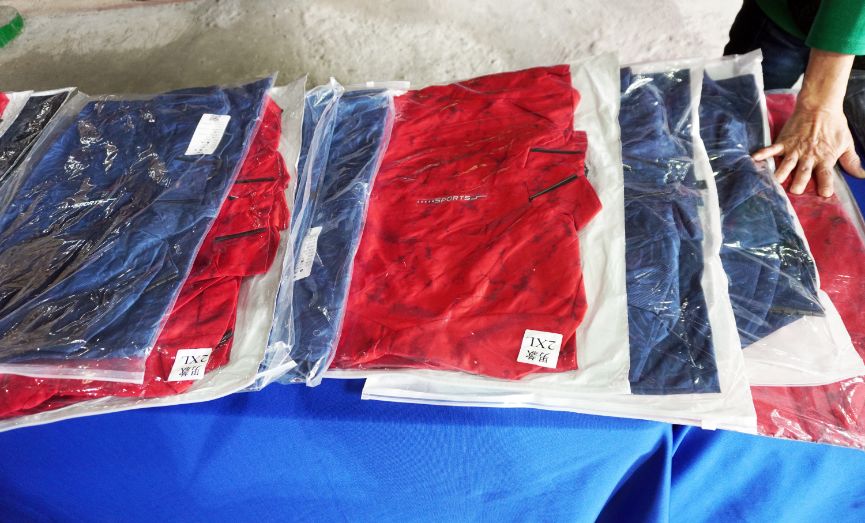 活動一開始,由主持人引領參與活動的八中里長者向志工進行登記,最後再到長桌領取防寒外套。拿到外套後,大家都開心地跟林浩隆里長進行合影。